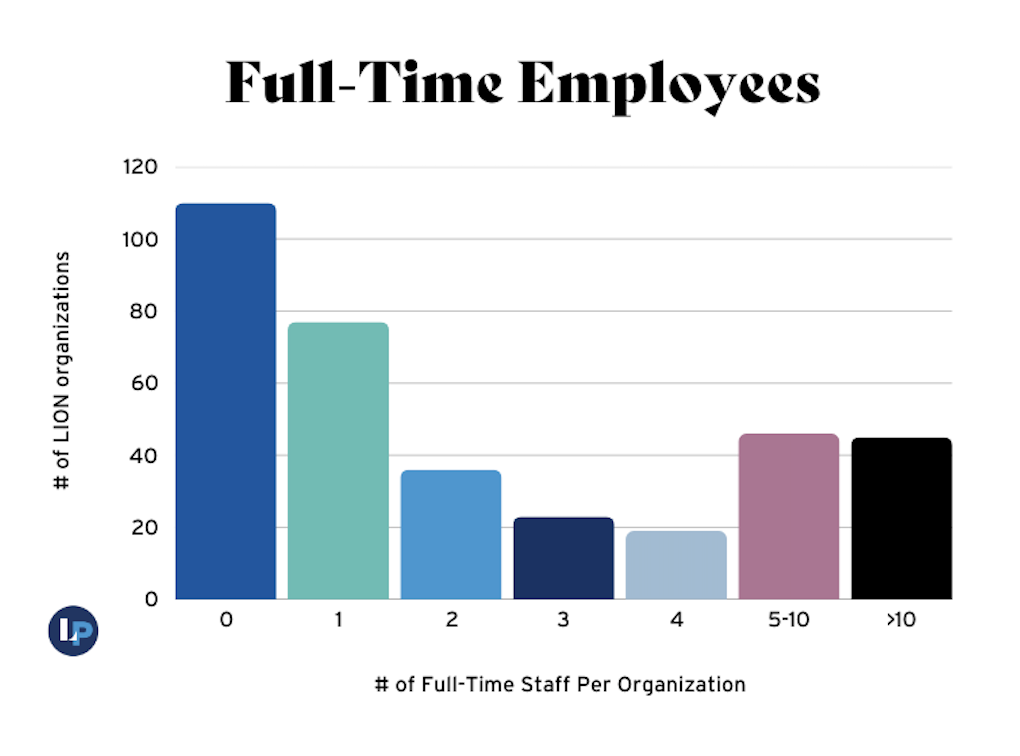 Participants represented 46 U.S. states, Washington, D.C., Puerto Rico, and seven Canadian provinces. Of those, 42 percent of participants were organizations founded in the past five years. On the tax status side of things, 56 percent of participants were for-profit businesses, and 44 percent were nonprofits or solely fiscally sponsored, a split in line with LION’s overall membership.